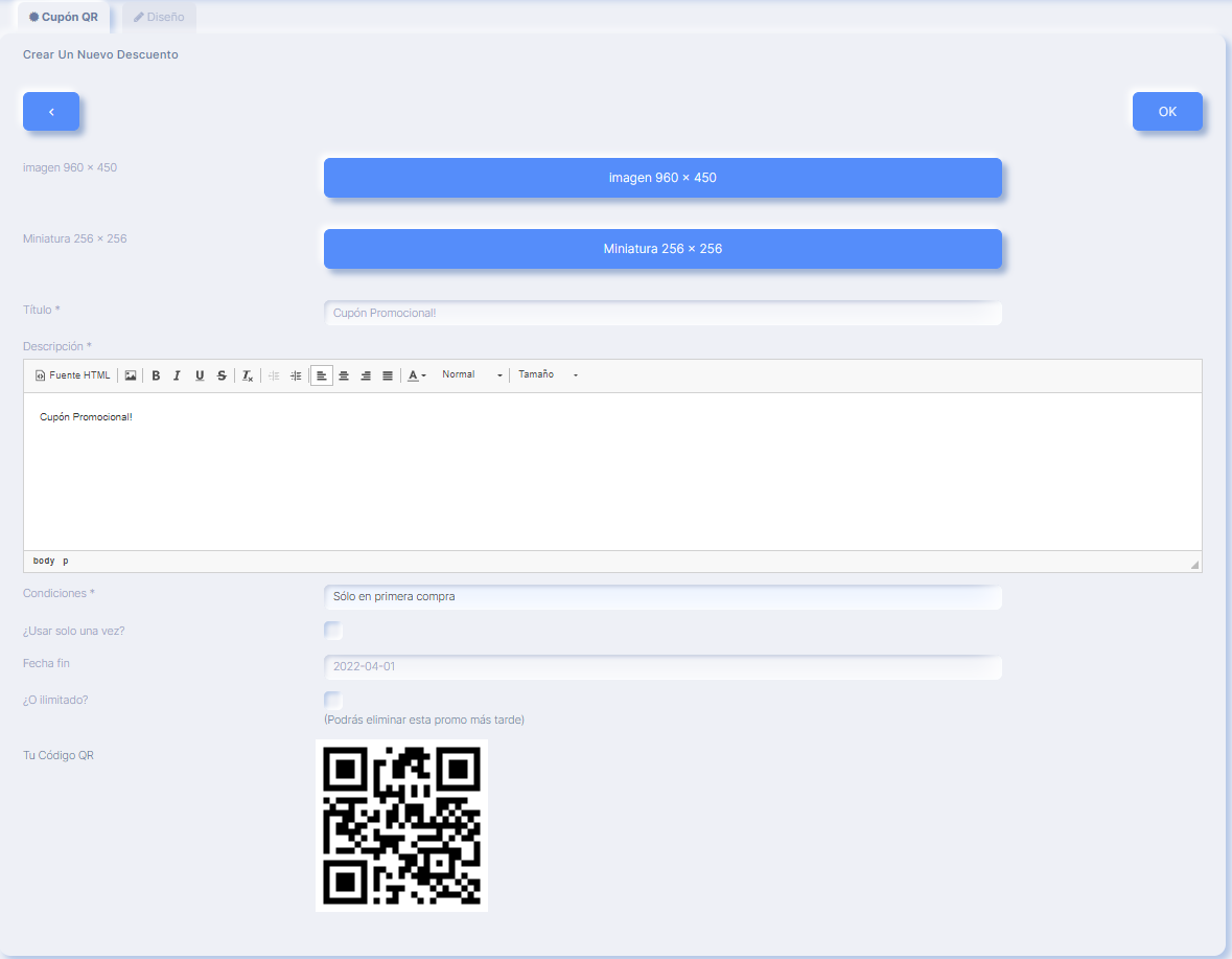 Descripción La función Promos QR te permitirá crear cupones de descuento que se desbloquearán al escanear un código QR específico. Una vez desbloqueados, el cliente podrá usar el descuento cuando quiera. Esto significa que el cupón no aparecerá en la ...