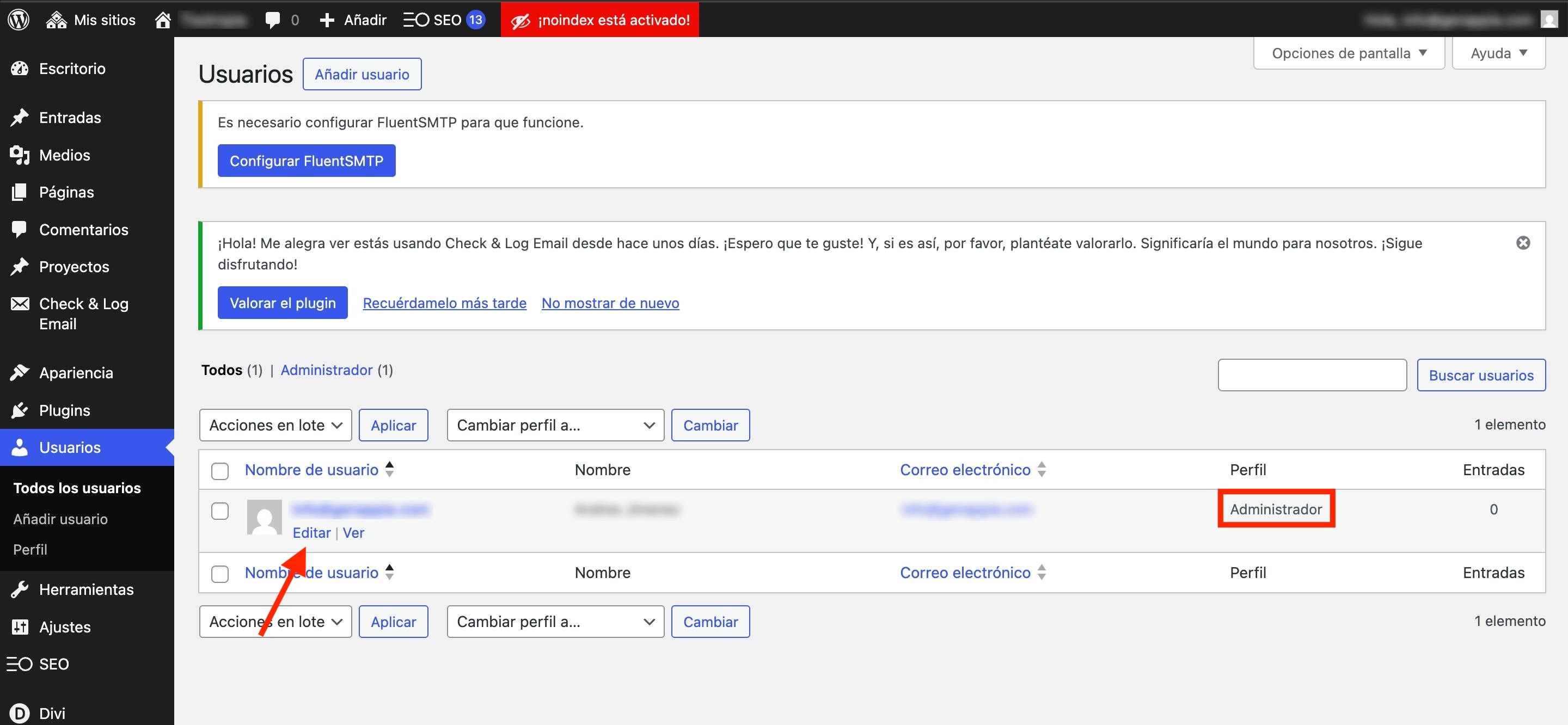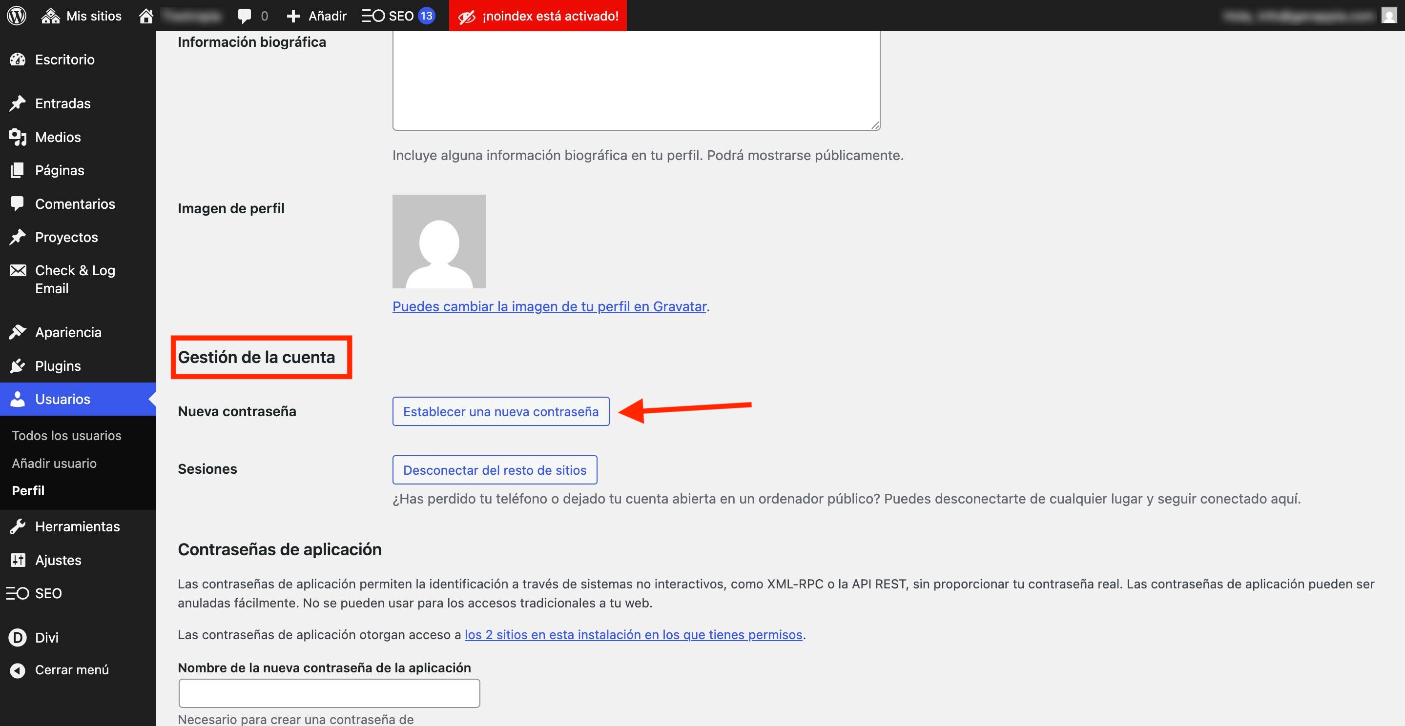 Accediendo de nuevo al icono del engranaje del sitio, verás que ahora aparecen nuevos iconos en el campo "Asociar Dominio"