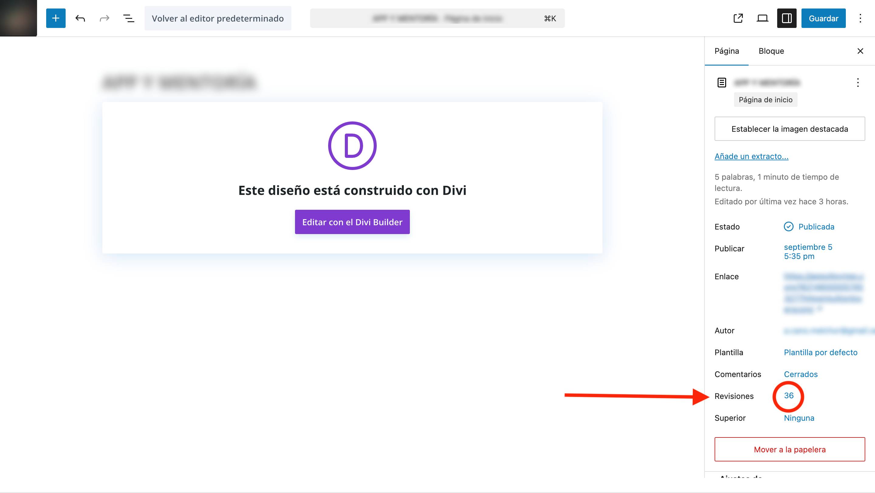 4. En las opciones de la derecha busca una opción llamada “Revisiones” y haz clic en el número que figura a su derecha.