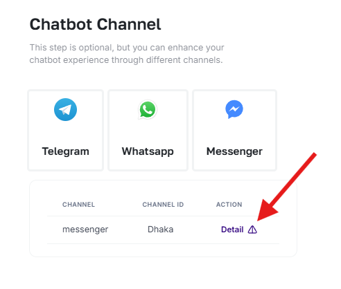 5. Pulsa en Añadir canal para guardar. El canal de Messenger aparecerá en la lista de canales configurados.