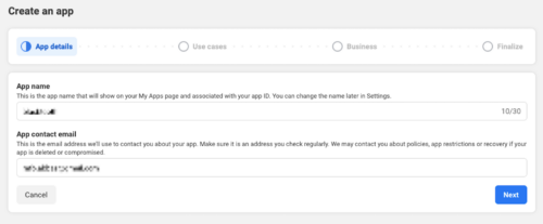 1. Accede a Facebook for Developers con tu cuenta de Facebook y pulsa en My Apps → Create App